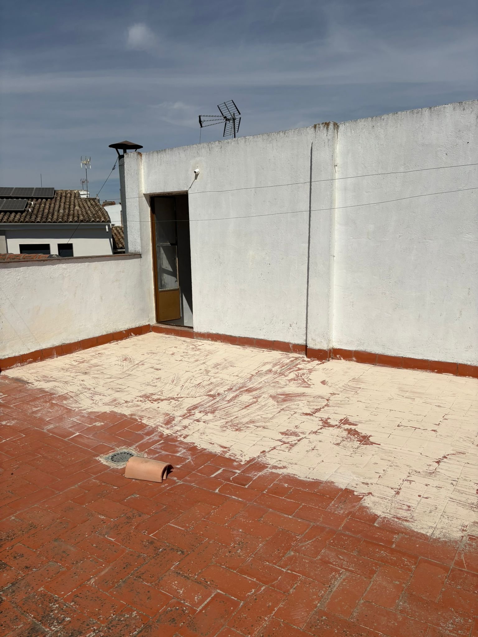 • 🧱 Azotea de grandes dimensiones, con la mitad ya techada, lo que permite habilitar un lavadero, trastero, zona de ocio o incluso una estancia adicional.